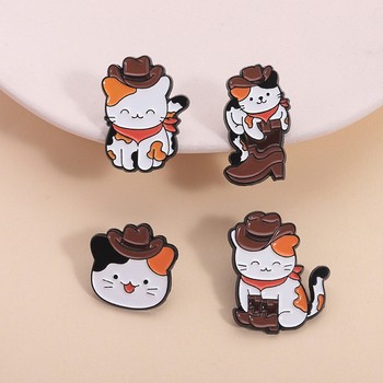 Sombrero de gato vaquero de vaca de tres colores lindo japonés y coreano, Pin de cuello de Animal divertido, decoración de mochila con insignia de Metal, regalo exquisito